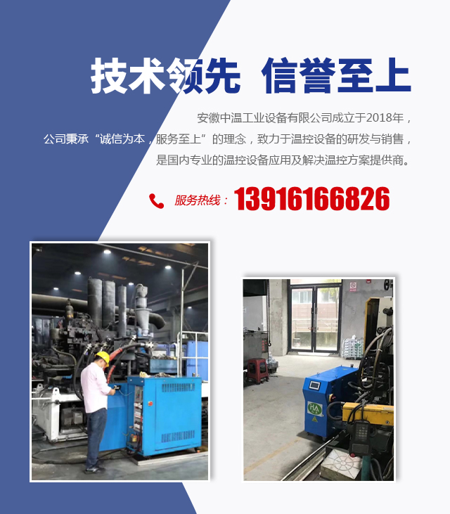 安徽中溫工業(yè)設(shè)備有限公司成立于2018年,公司秉承“誠(chéng)信為本,服務(wù)至上”的理念,致力于溫控設(shè)備的研發(fā)與銷(xiāo)售,是國(guó)內(nèi)專業(yè)的溫控設(shè)備應(yīng)用及解決溫控方案提供商。